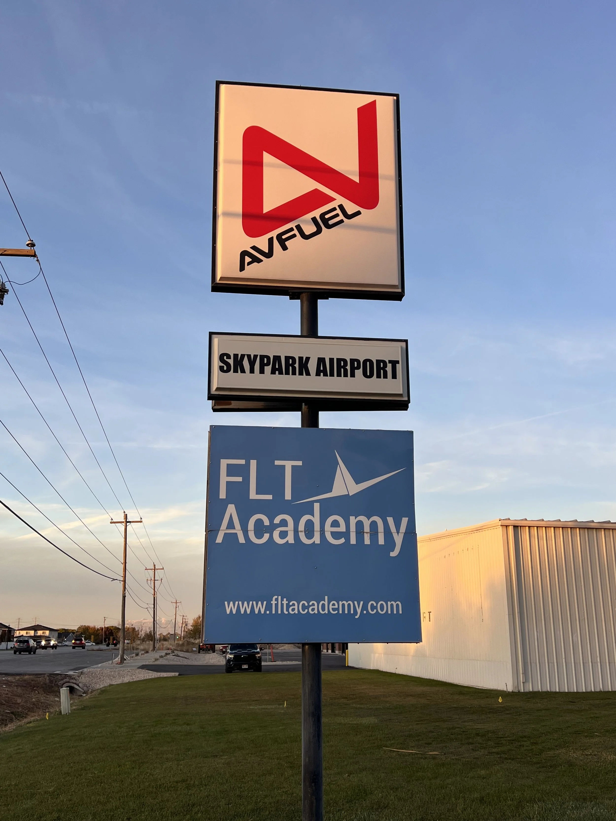 I am located on the ground floor of the FBO building, which also houses the flight schools on the second floor. The building should be easy to find. It’s right off Redwood Road. It’s a white building with a blue banner on the top portion of the building that says SKYPARK AIR TERMINAL.